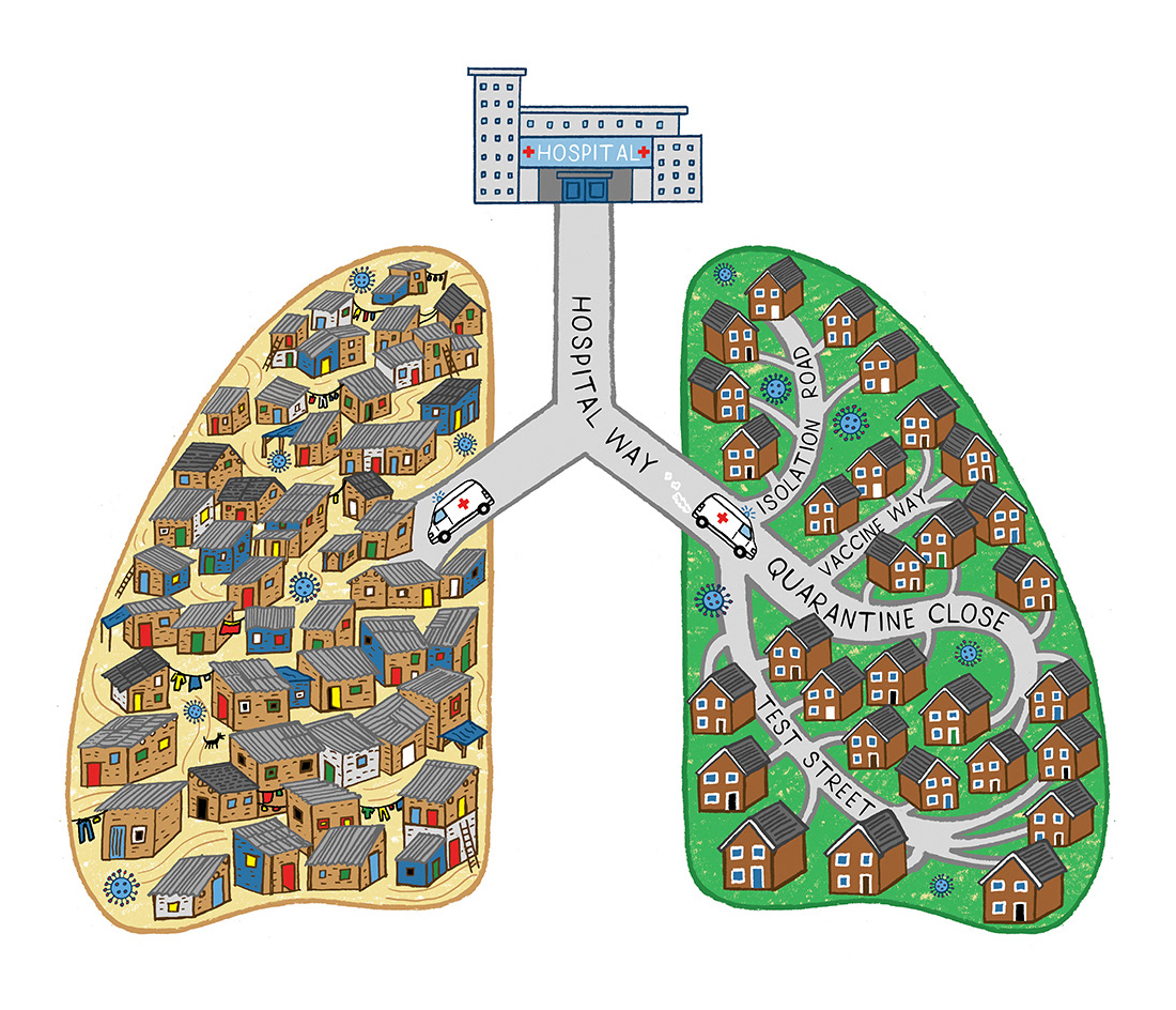 Illustration for an article that highlighted the importance of street names and residential addresses when tackling outbreaks of disease.