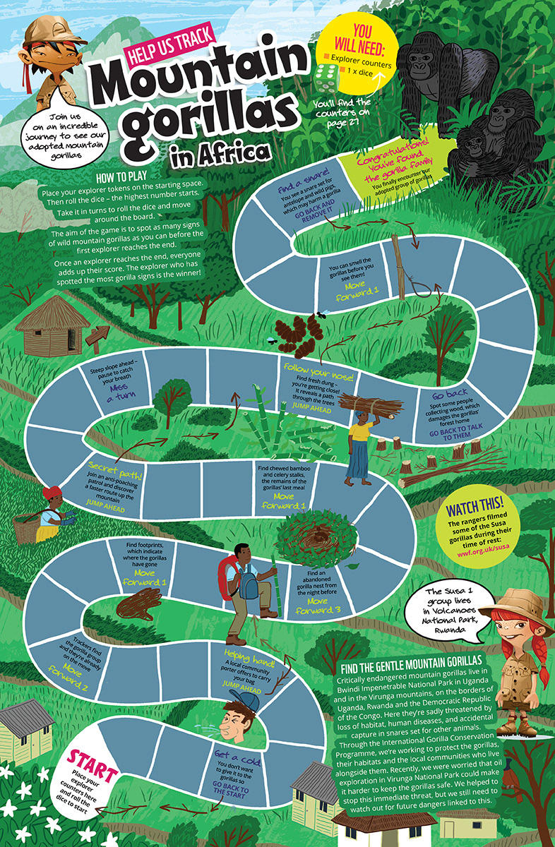A collection of illustrated board games and infographics.