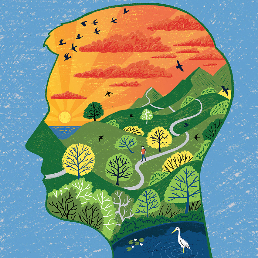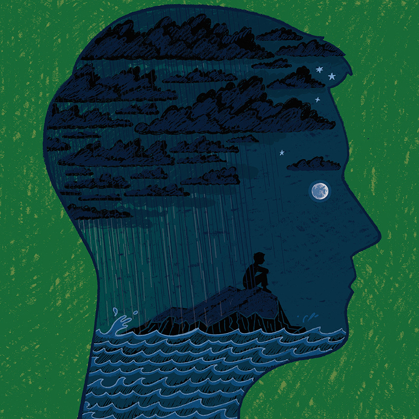These illustrations were influenced by subjects such as phrenology and mindfulness. My aim was to depict emotions in a way that will encourage an empathetic response from the viewer. By using different environmental signifiers to communicate contrasting moods, I am also illustrating our shared understanding of what is a safe, tranquil and desirable location and what is not.