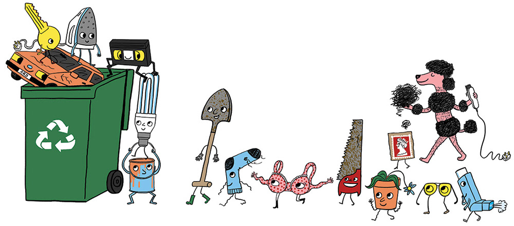 Produced for Woman's Weekly Magazine. The illustrations depict various subjects such as saving time, recycling and healthy/unhealthy eating.