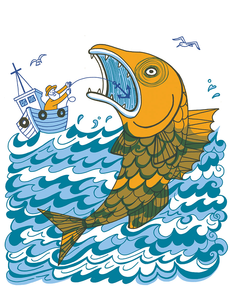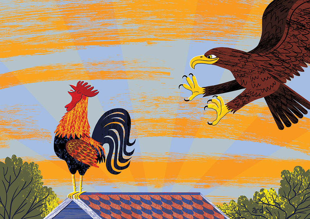 Artworks based on different tales from around the world: The Greek Myths, The White Hart, The Long Long Worm, The Sea Terror, The Boy Who Cried Wolf, The Cautious Fox, The Proud Cockerel and Pergrin and the Mermaid.
